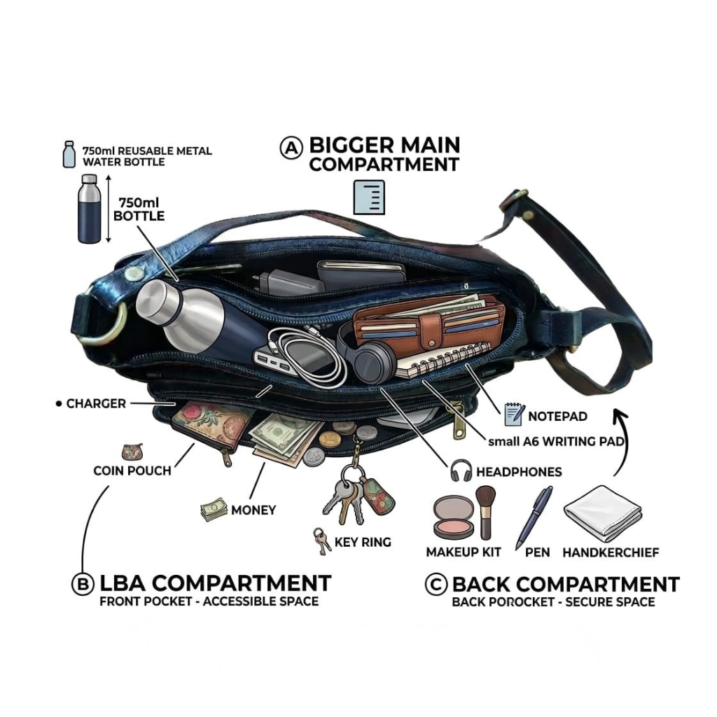Crafted from 100% genuine leather , this bag is not only a fashion statement but also a practical choice. With multiple compartments, it keeps your belongings organized while adding a touch of elegance to your everyday look. Whether you’re heading to the office, a casual day out, or a festive gathering, this sling bag is your perfect companion.