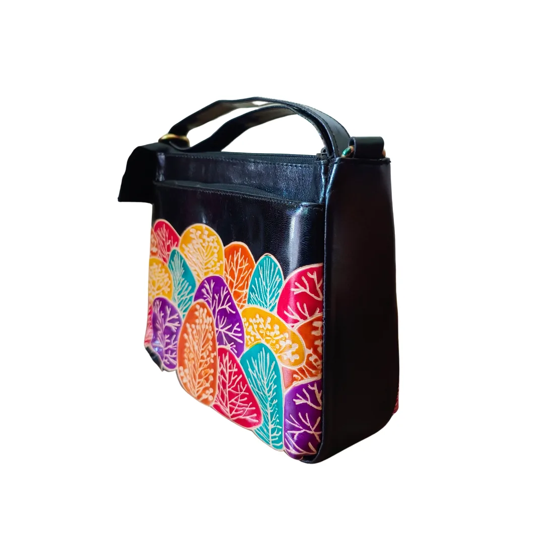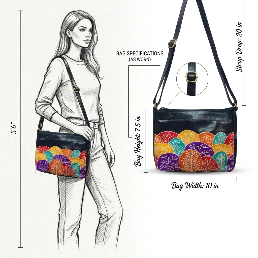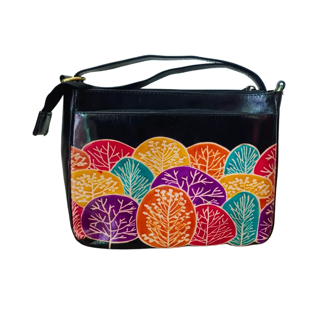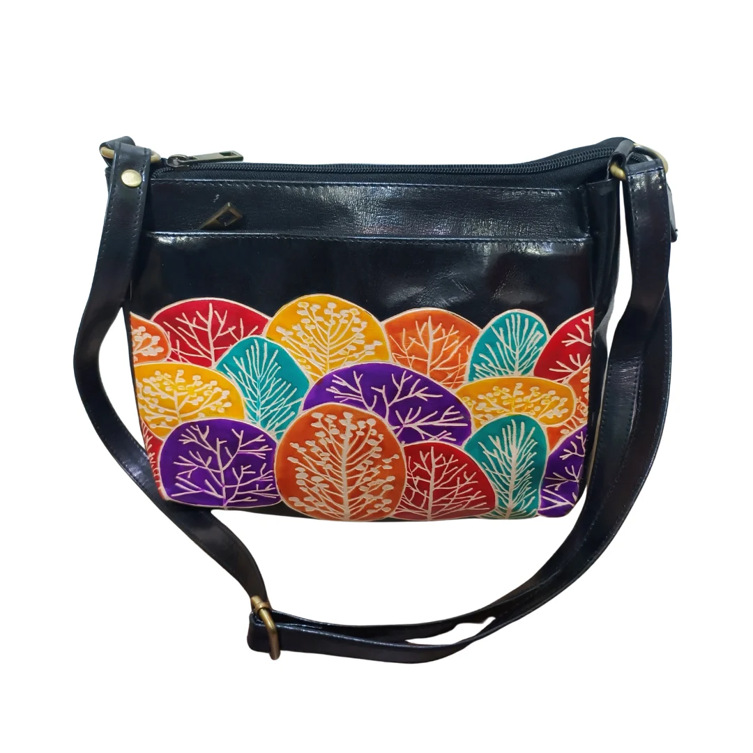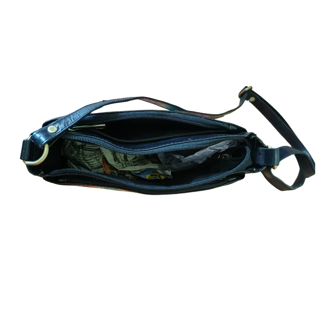 • This is a genuine leather multi-compartment sling bag with unique hand-painted designs. Superb quality and spaciuos.