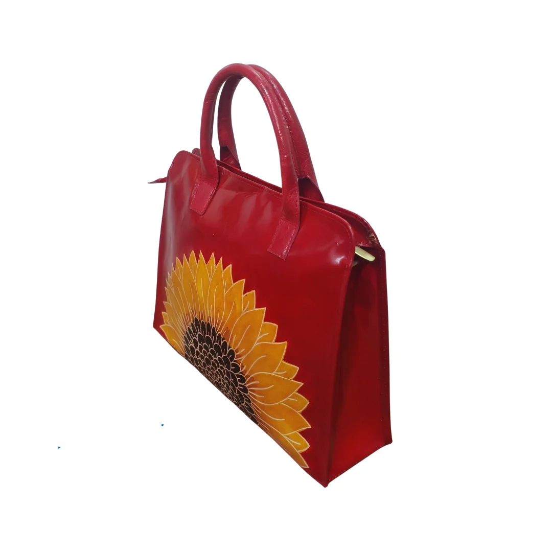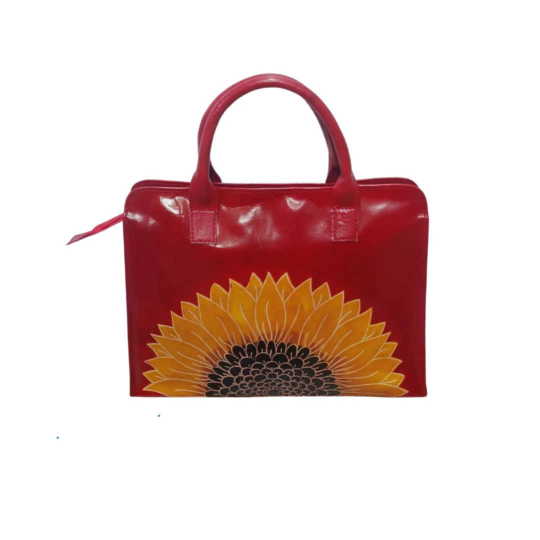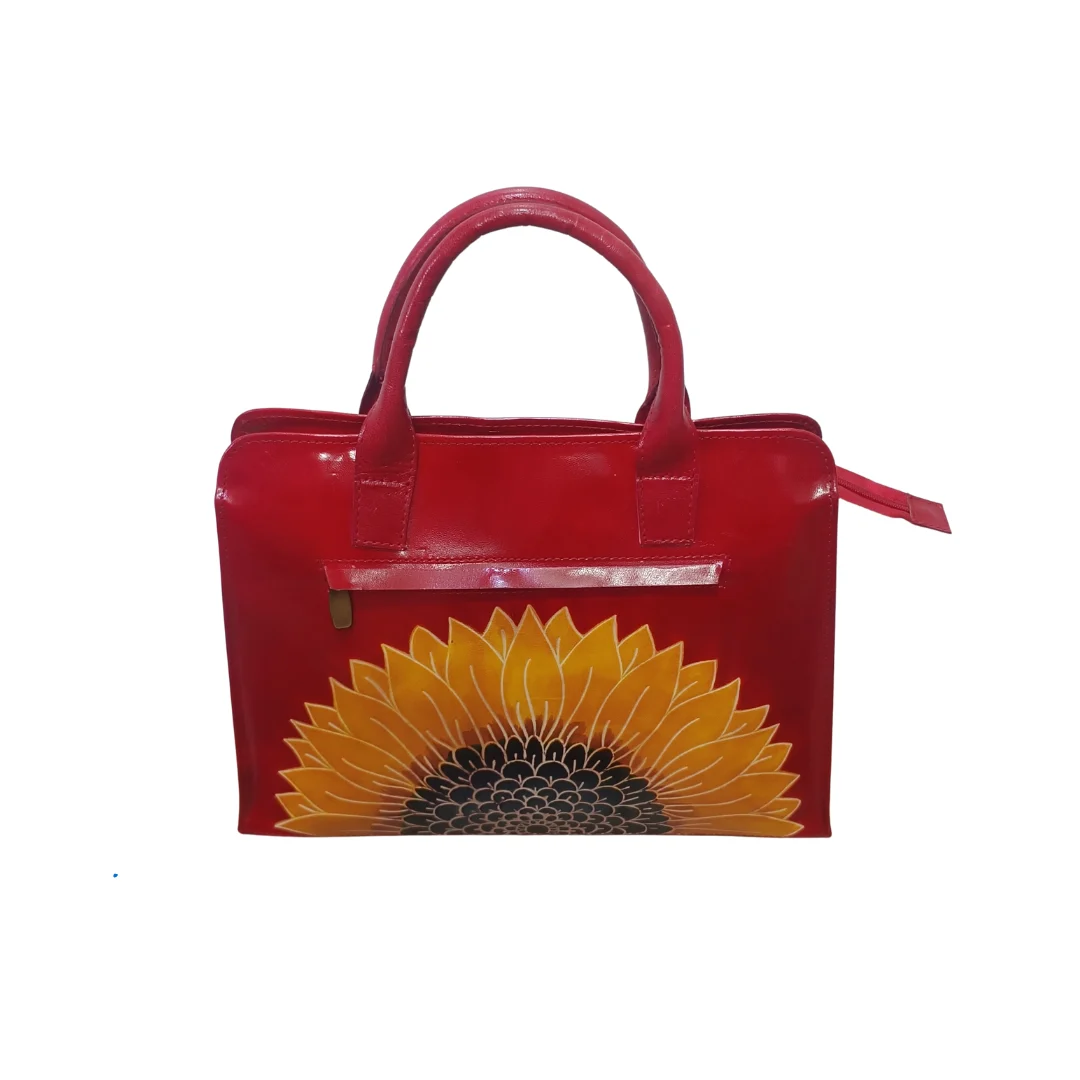 Chitrahar Shantiniketan Genuine Leather Handcrafted Handbag with Detachable Sling for Women (SUNFLOWER) (maroon)