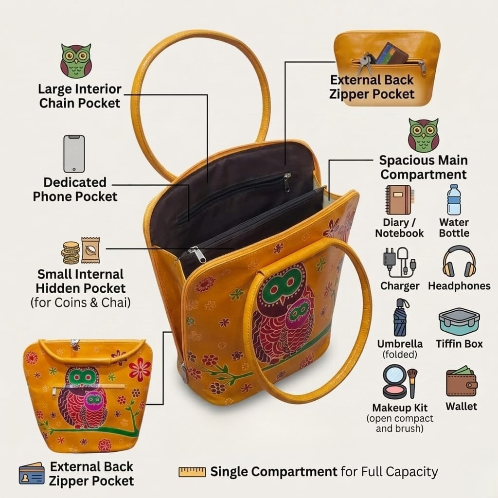 Shantiniketan Handcrafted Genuine Leather Tote Bag for Women and Girls (OWL) ₹1,500.00 Original price was: ₹1,500.00.₹999.00Current price is: ₹999.00.