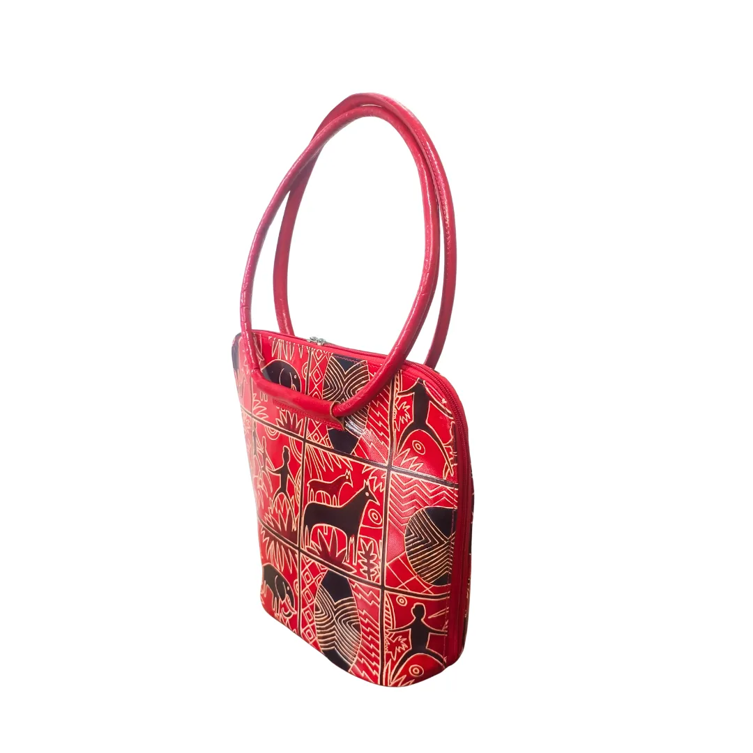Genuine Leather Traditional Batik Printed Shoulder Bag for Women