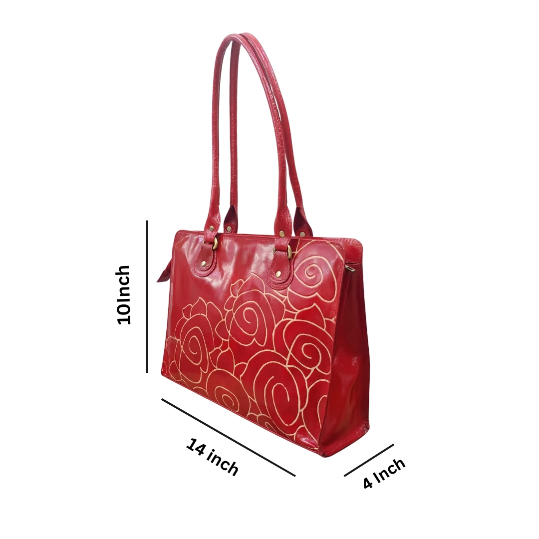 Genuine Leather Handcrafted Shoulder Bag for Women – Floral & Rose Motif Design